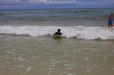 Hudson made it back down to the beach the following day for a little sand play and boogie boarding.