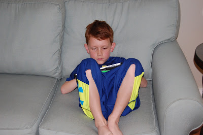 My big boy on the other hand had a rough start to our vacation. The first day on the beach, he kept telling me he was cold, which was really odd. When we got back to our beach house, he fell asleep while I was in the shower, which was bizarre. I felt his head and he was on fire. I took his temperature and it was 104.6!! We quickly found a doctor and found out he had strep throat. So, the next day consisted of a lot of snuggling, movie watching, and game playing.
